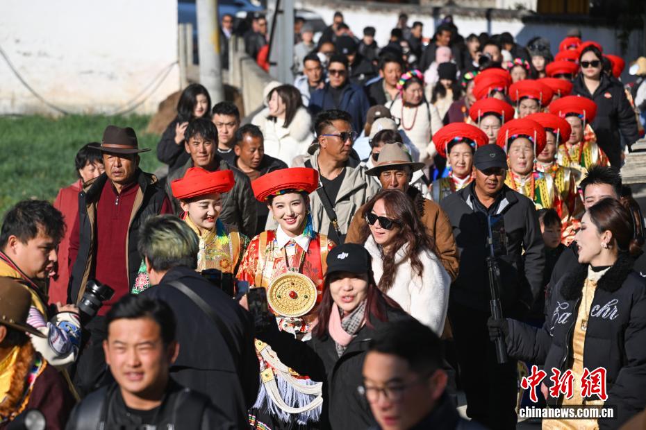 1月24日,在雪域高原云南省迪庆藏族自治州香格里拉市仓觉村,全网粉丝量超30万的藏族姑娘扎史永宗和丈夫扎史培楚举行了一场打破线上与线下、地域与时空、传统与现代多重“次元壁”的婚礼。婚礼上,新人穿着传统藏式婚服,按习俗完成接亲、祈福等仪式,亲朋好友围在一起跳锅庄舞。同时,现场摆放着现代风格的婚纱照,用花艺等做装饰,还通过5G网络直播,让没能到场的网友也能身临其境,传统婚俗在现代表达中焕发新生。