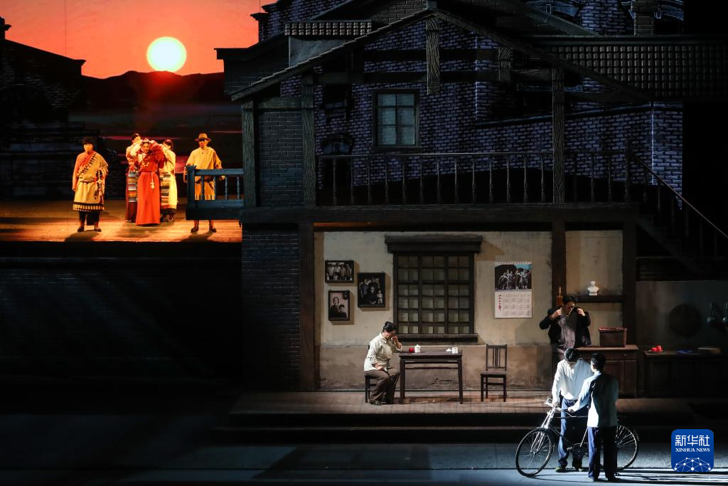 1月28日晚,在甘肃黄河剧院,甘肃省话剧院演员在话剧《青青的阿万仓》中表演。新华社记者 郎兵兵 摄
