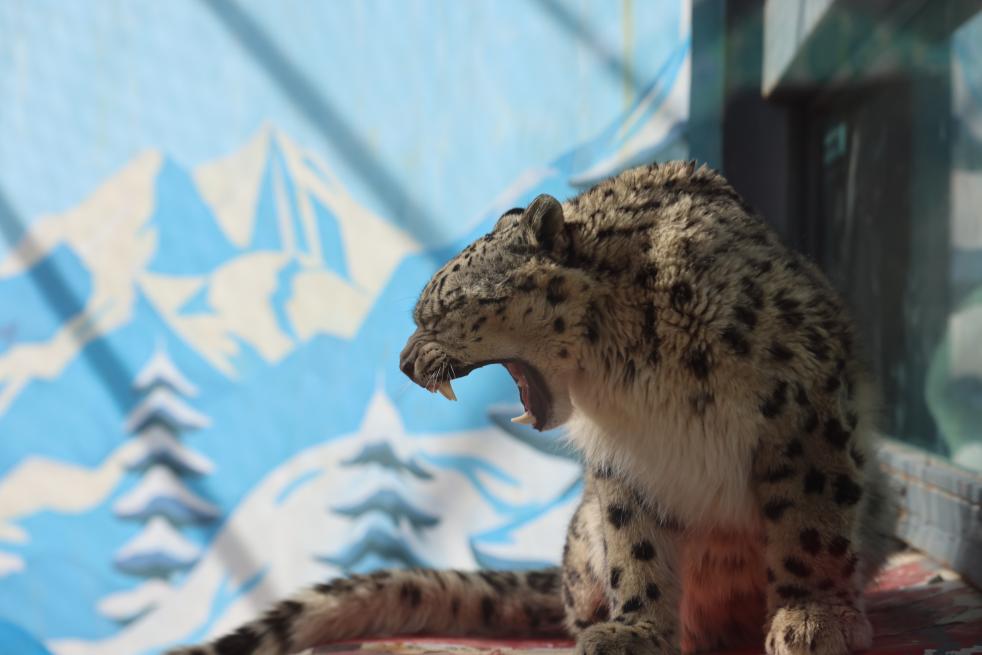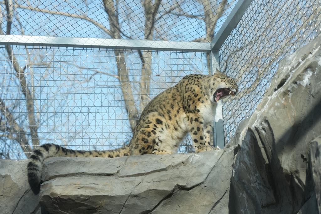 2025年3月被救护的雪豹“凌小蛰”在雪豹馆内嘶吼。