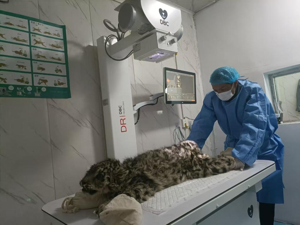 雪豹“凌小蛰”接受医疗检查。