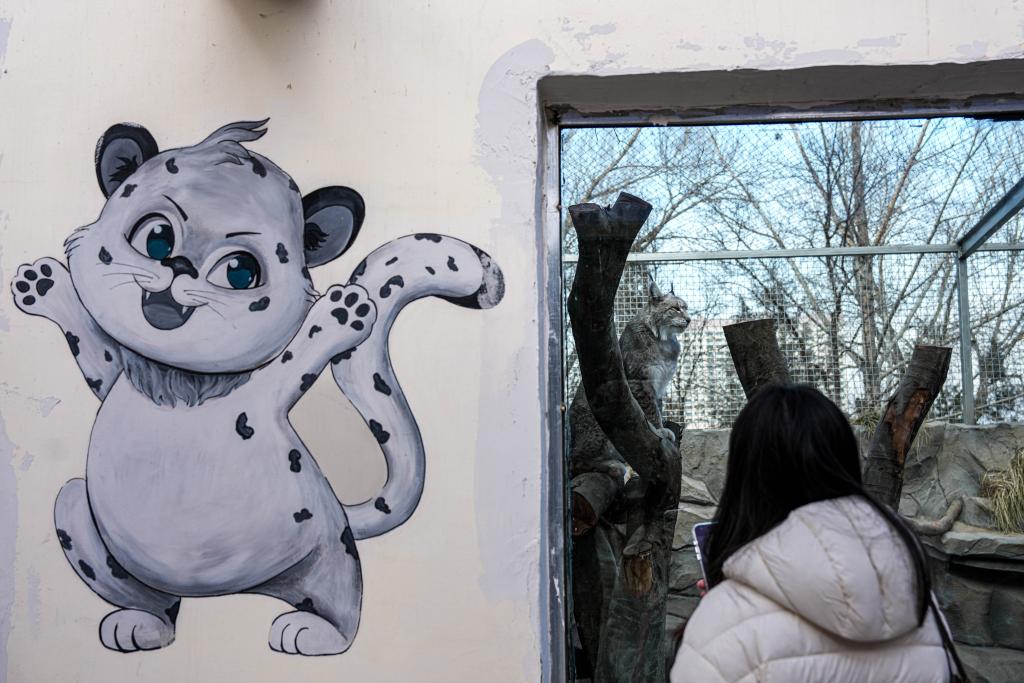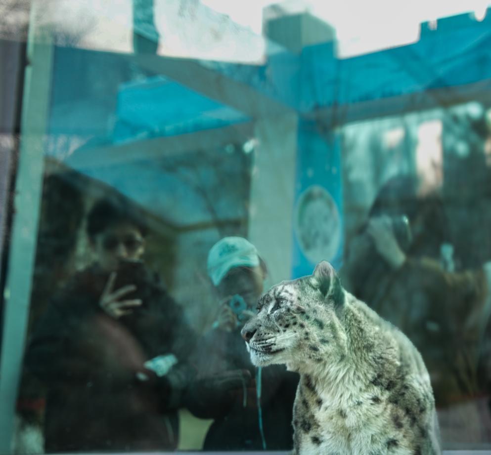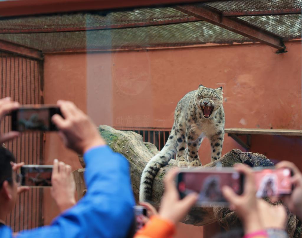 在西宁野生动物园雪豹馆前