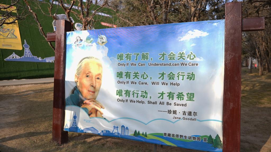 这是西宁野生动物园的第一张科普牌,上面印着国际动物学家珍妮·古道尔的名言。