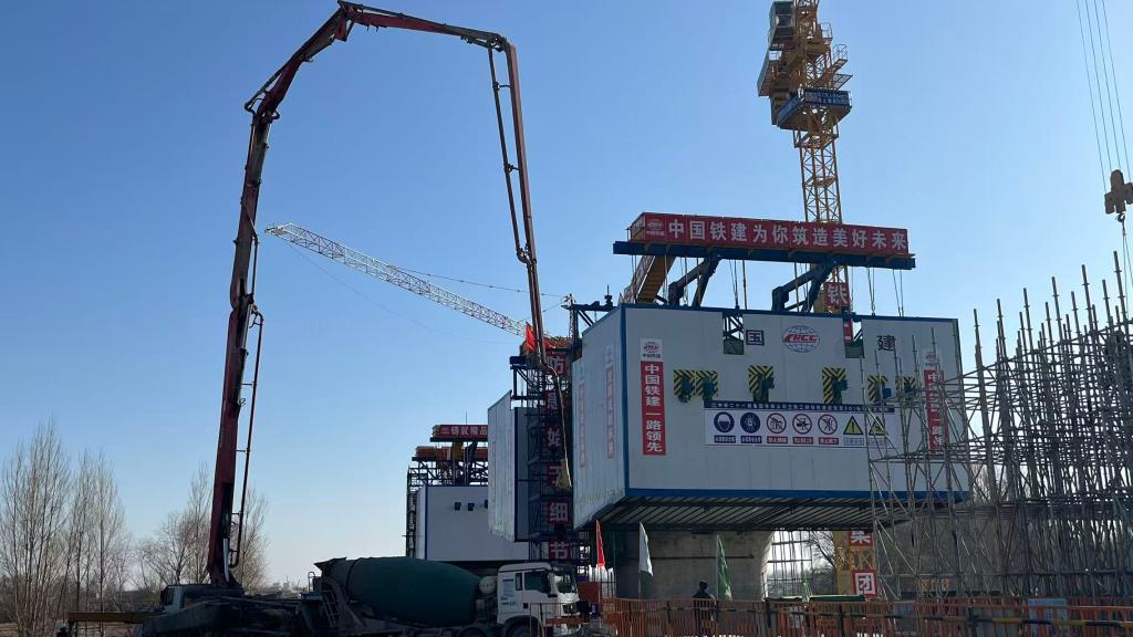 在中铁二十一局集团有限公司所建项目处,机器轰鸣与焊花飞溅交织,钢铁巨臂缓缓运转,巨大的桥墩向远方延展开来。