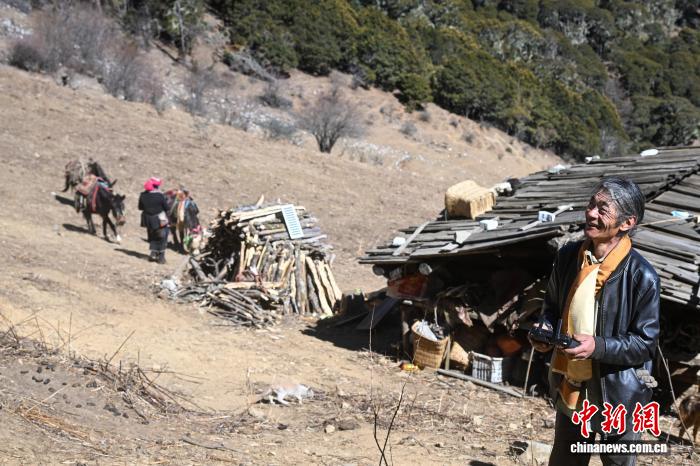 大年初一清晨,尼汝村的炊烟与雪山云雾一同升起。年近百半的丹增培楚(以下简称培楚)从屋里取出一个新买的马粮袋,一边喂马,一边向记者展示,“网上买的,好看又耐用。”他还赶在春节前通过电商平台置办了一批年货和农具。