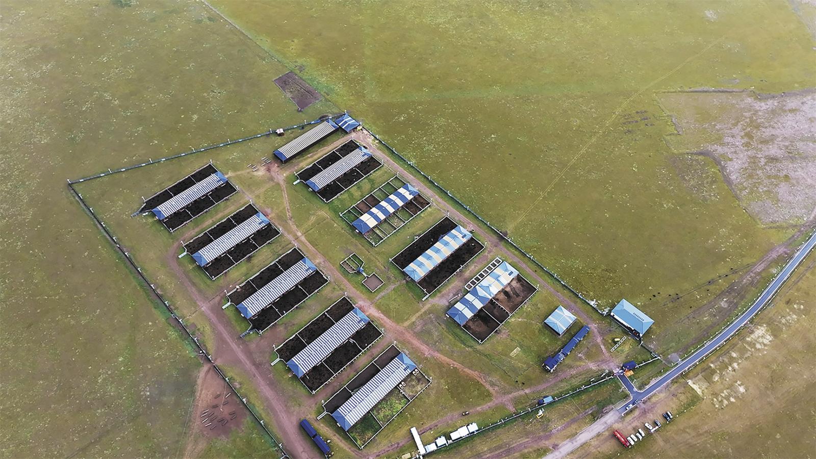 跟随永旦松保踏入曲麻莱县牦牛良种繁育园区,园区内广袤草原与现代设施相映,合金板房沿园区边缘整齐排列,畜棚与各种设施分布井然有序。