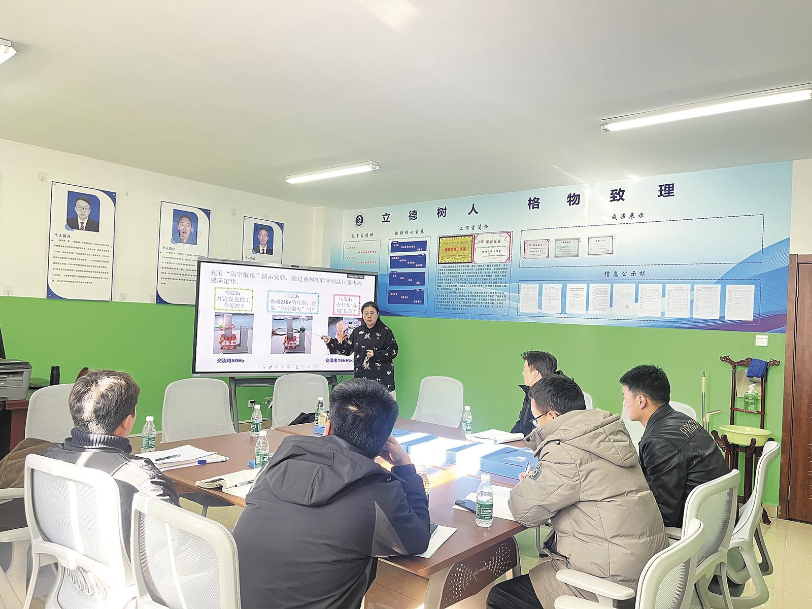 针对《电场 电场强度》的抽象性,她指导才旺巴措老师通过实验演示、问题链引导等方式,降低学生理解难度;围绕《电阻》教学,建议李发文老师强化控制变量法的实验设计,突出电阻作为导体本身属性的核心逻辑;对于《匀变速直线运动的位移与时间的关系》,指导王统成老师巧用速度—时间图像几何意义,帮助学生构建公式推导的逻辑链条。同时,于海娜老师还分享了北京先进的教学理念与课堂管理经验,鼓励三位教师在教学中融入生活实例,增强课堂互动性与趣味性。