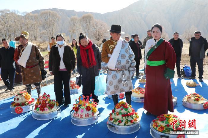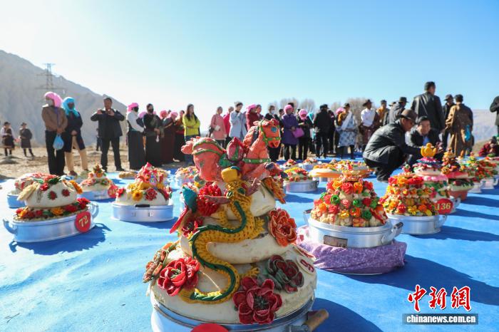 图为春耕现场摆放的“彤糕”。中新社记者 马铭言 摄
