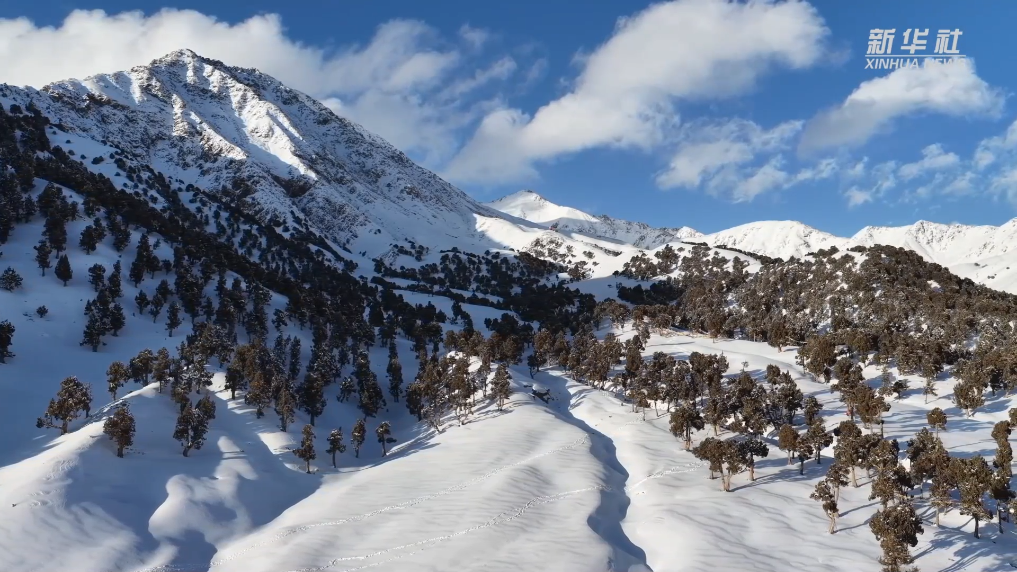 高空俯瞰,皑皑白雪覆盖群山,勾勒出舒展柔美的自然线条。天地澄澈明净,静谧辽阔间尽显雪域高原的雄浑与灵秀,勾勒出独属于高原春日的清新意境。