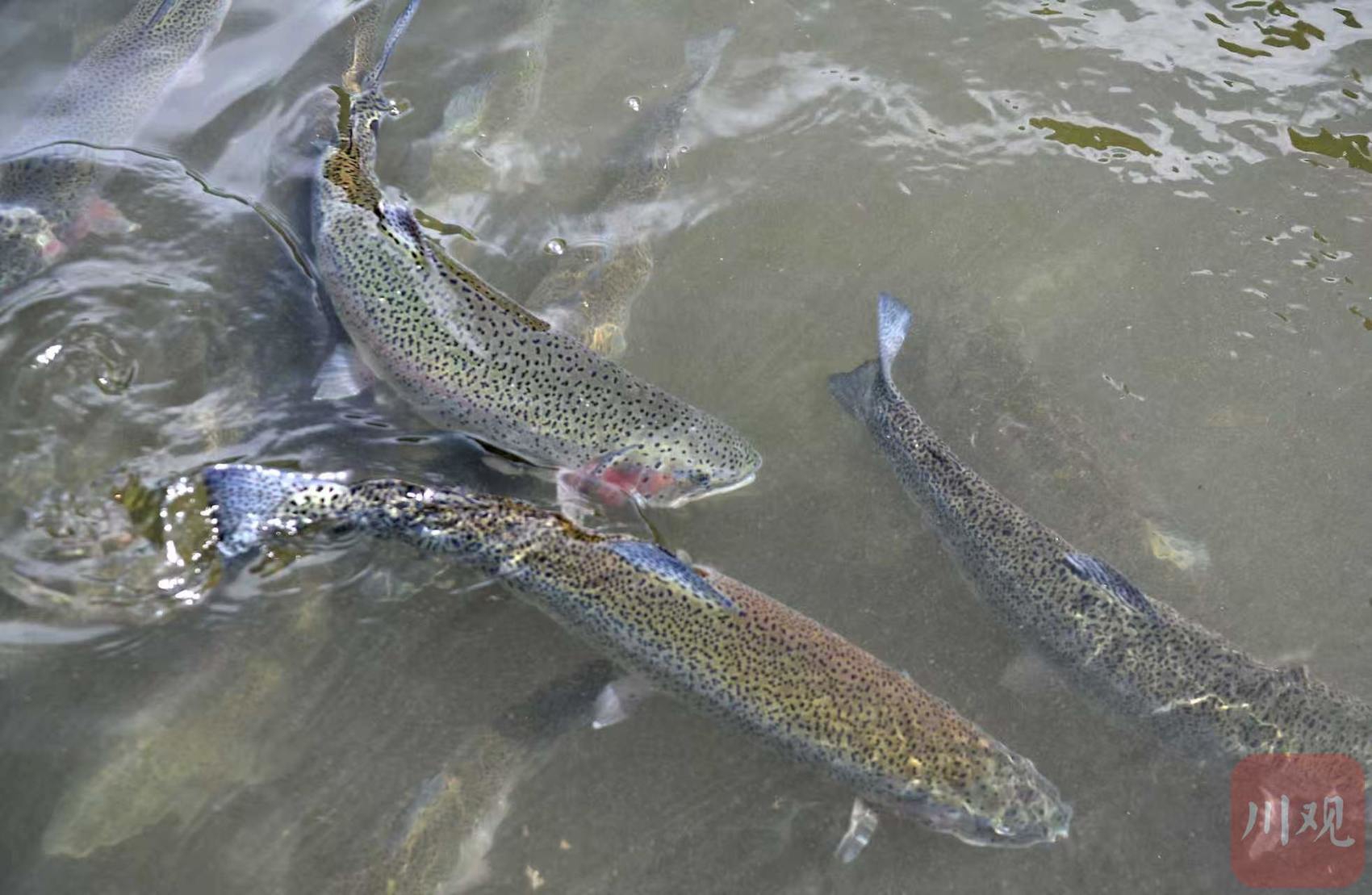 但并非所有水域都能养殖。虹鳟属冷水鱼类,适合养殖的区域并不多。冷水资源,成为养殖这一名贵鱼类的稀缺资源。川西北高原上的理县,平均海拔2672米,县域内雪山众多,冰雪融水正好可以为虹鳟等冷水鱼的养殖提供良好条件。