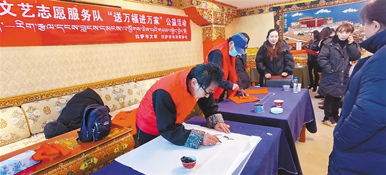 拉萨市文联书法家协会开展送万福进万家公益活动。