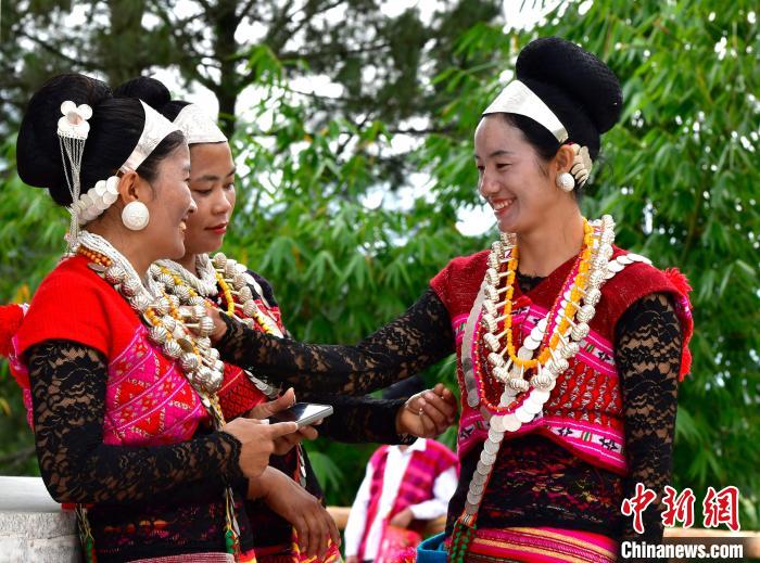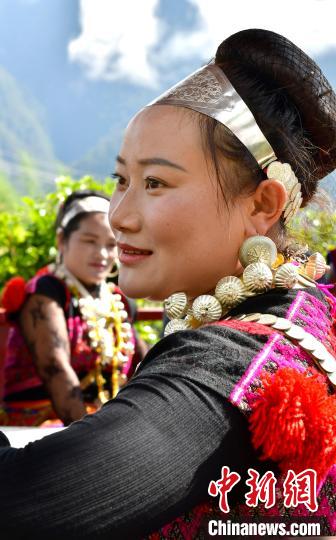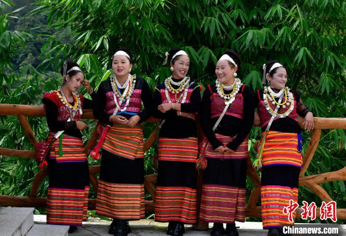 西藏自治区林芝市察隅县位于青藏高原东南边缘,南接缅甸和印度,是边陲重镇。在这深山峡谷间还居住着一个族群——僜人。僜人拥有独特的语言,但由于人口少、没有文字等原因,未被确认民族归属。图为8月24日,身着盛装的僜人妇女。中新社记者 李林 摄