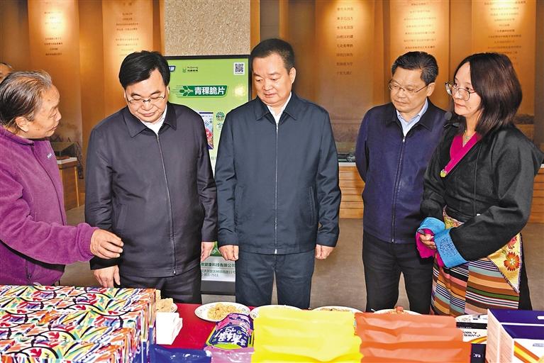 10月16日至17日,甘肃省党政代表团来藏考察。这是在藏期间,甘肃省党政代表团考察西藏奇正青稞健康科技有限公司,了解高原特色产业发展情况。 本报记者 旦增西旦 摄