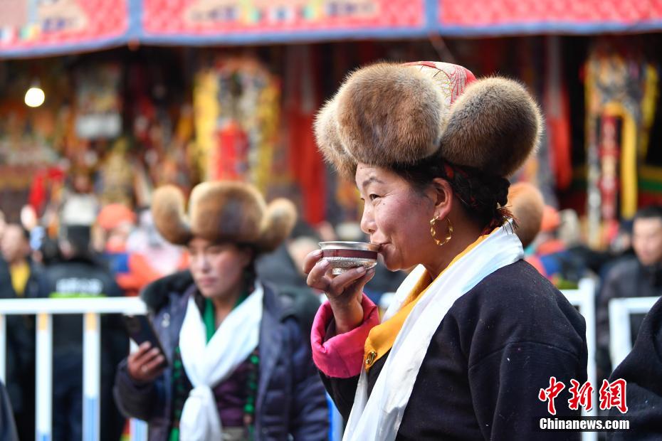 12月15日即藏历十月十五日是藏族传统的节日“白来日追”,俗称“仙女节”、“白拉姆节”等。相传藏传佛教最高护法神之一班丹拉姆的女儿白拉姆,不顾母亲的反对与赤尊赞私定终身,班丹拉姆一怒之下将赤尊赞赶到拉萨河南岸,规定二人仅每年的藏历十月十五日相见。图为一位藏族妇女品尝青稞酒。