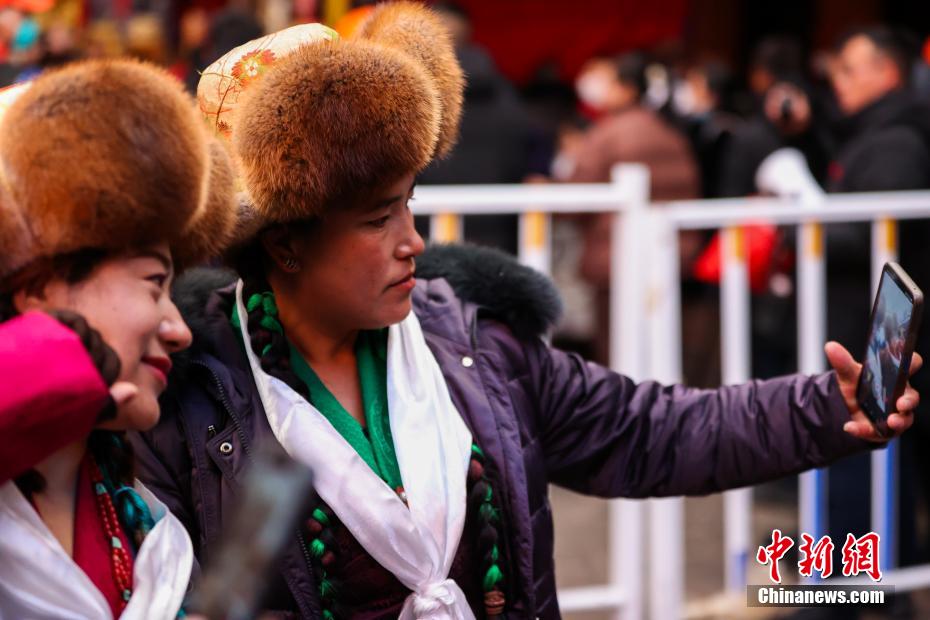 12月15日即藏历十月十五日是藏族传统的节日“白来日追”,俗称“仙女节”、“白拉姆节”等。相传藏传佛教最高护法神之一班丹拉姆的女儿白拉姆,不顾母亲的反对与赤尊赞私定终身,班丹拉姆一怒之下将赤尊赞赶到拉萨河南岸,规定二人仅每年的藏历十月十五日相见。图为信众在大昭寺自拍留念。