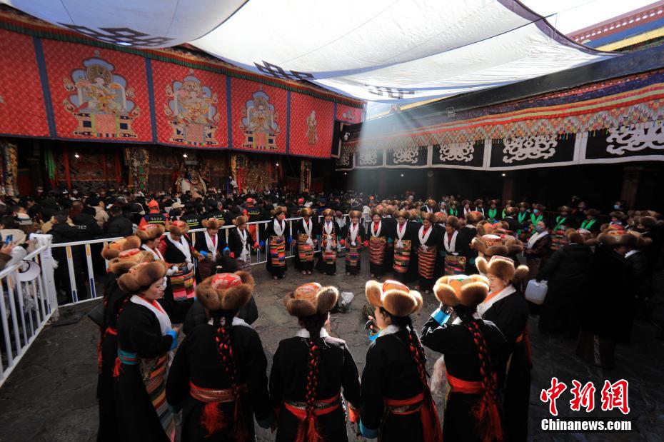 12月15日即藏历十月十五日是藏族传统的节日“白来日追”,俗称“仙女节”、“白拉姆节”等。相传藏传佛教最高护法神之一班丹拉姆的女儿白拉姆,不顾母亲的反对与赤尊赞私定终身,班丹拉姆一怒之下将赤尊赞赶到拉萨河南岸,规定二人仅每年的藏历十月十五日相见。图为身着民族服装的信众在大昭寺内载歌载舞。