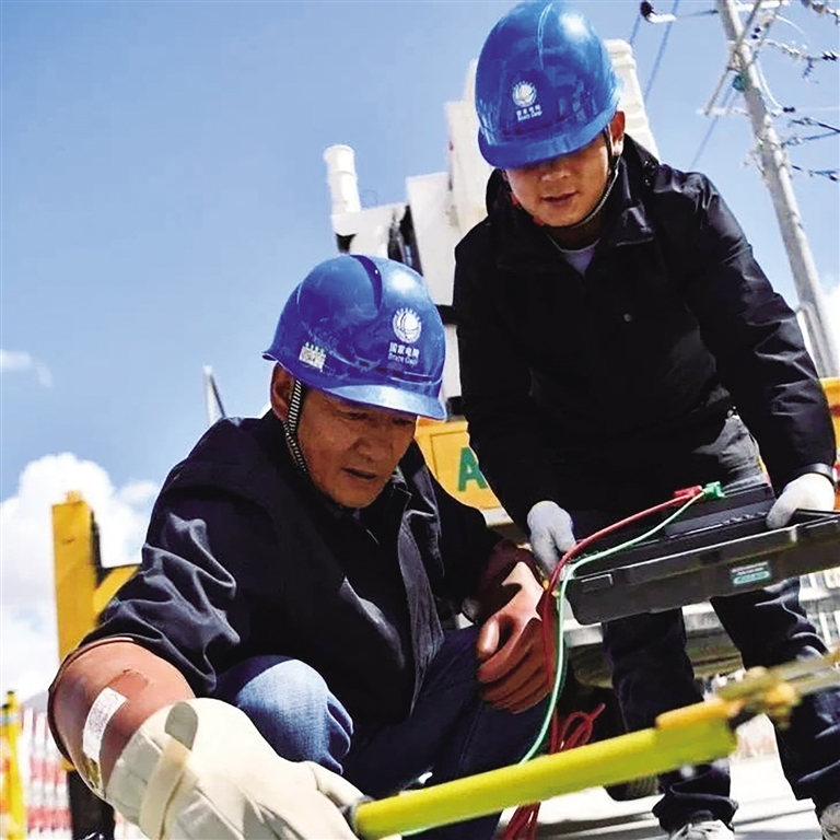 带着一次又一次对事业的执着与坚韧,国网西藏电力带电作业高歌猛进,2021年完成了海拔4490米配网不停电作业;2023年实现配网不停电作业7地市全覆盖;2024年首次在拉萨完成了配网不停电复杂作业;2024年完成了西藏电网首次、也是世界海拔最高的220千伏输电线路等电位带电作业,不断刷新的作业纪录为我国乃至全球高海拔地区电力运维提供了宝贵的技术参数和实践参考。