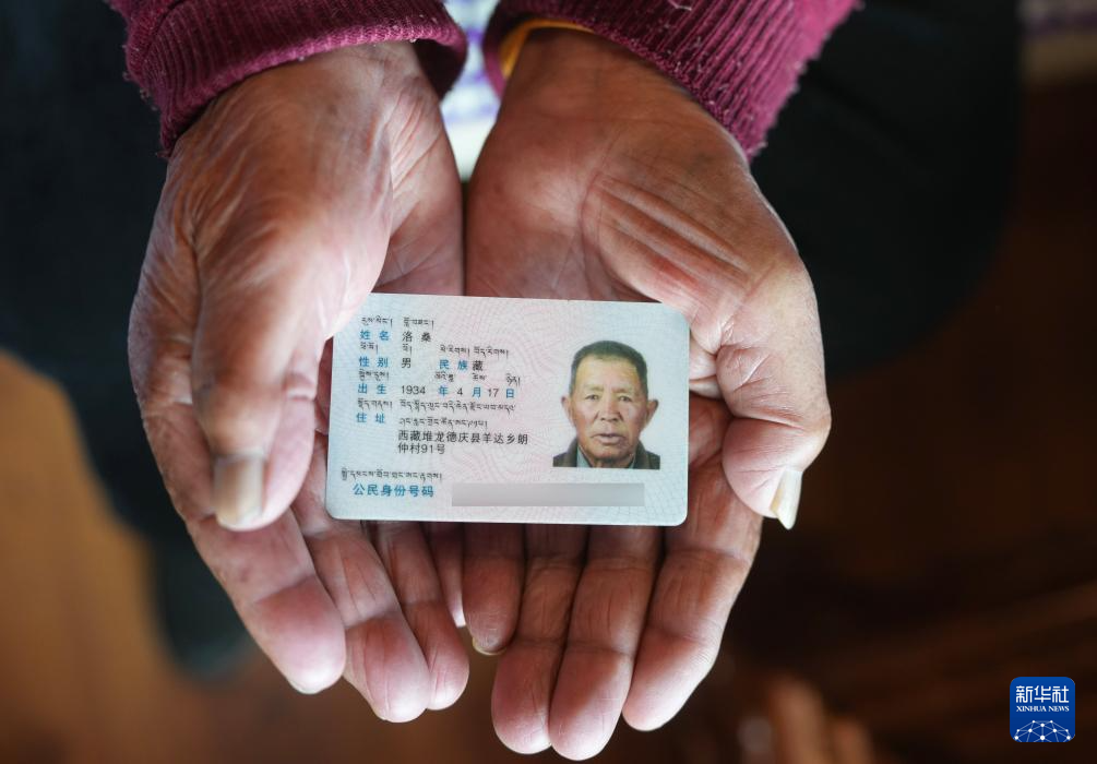 洛桑老人展示身份证(3月20日摄)。新华社记者 晋美多吉 摄
