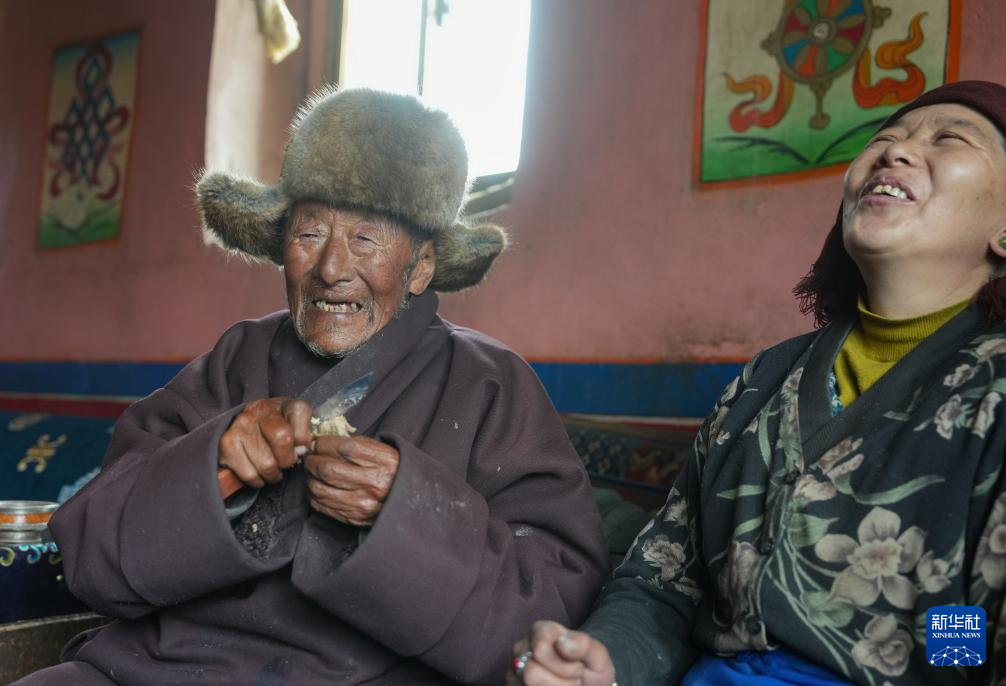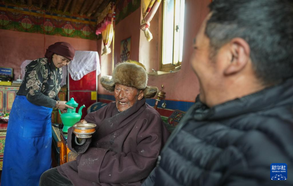 索扎老人和家人聊天(3月20日摄)。新华社记者 晋美多吉 摄