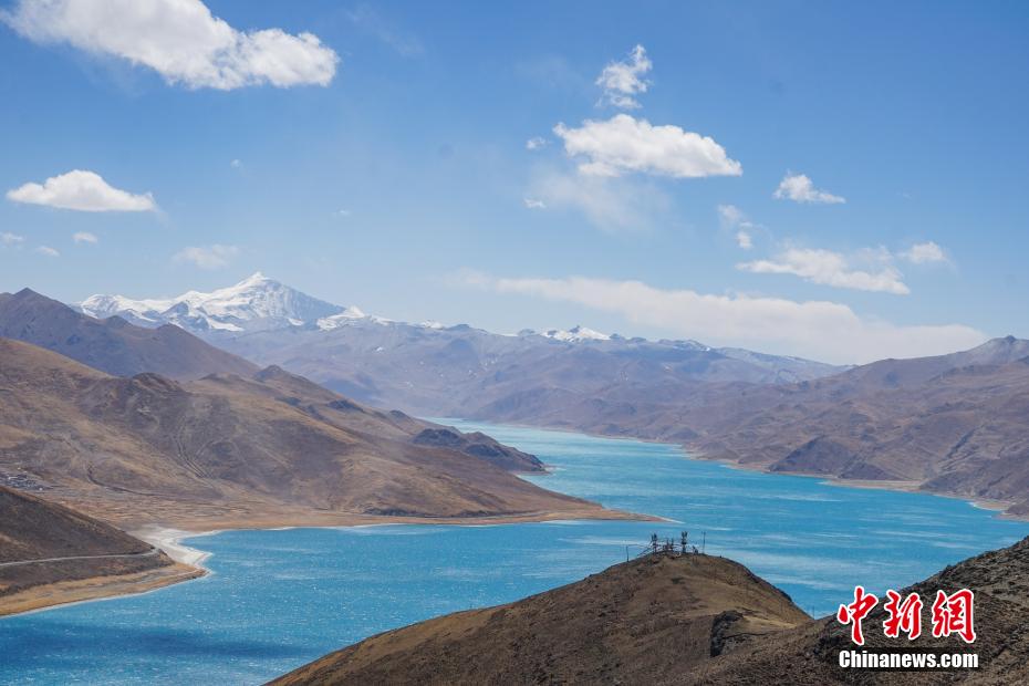 3月31日,羊卓雍措景色如画。羊卓雍措位于西藏自治区山南市境内,是喜马拉雅山北麓最大的内陆湖泊,湖面海拔4440多米。春日,湖水与蓝天、白云、群山相互映衬,成群的水鸟振翅飞翔,构成一幅壮丽的生态画卷。中新社记者 马铭言 摄