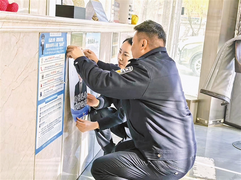 山南检察司法警察协助检察官对校园周边宾馆登记入住情况进行执法检查,清理校园周边环境。图片均由山南市检察院提供