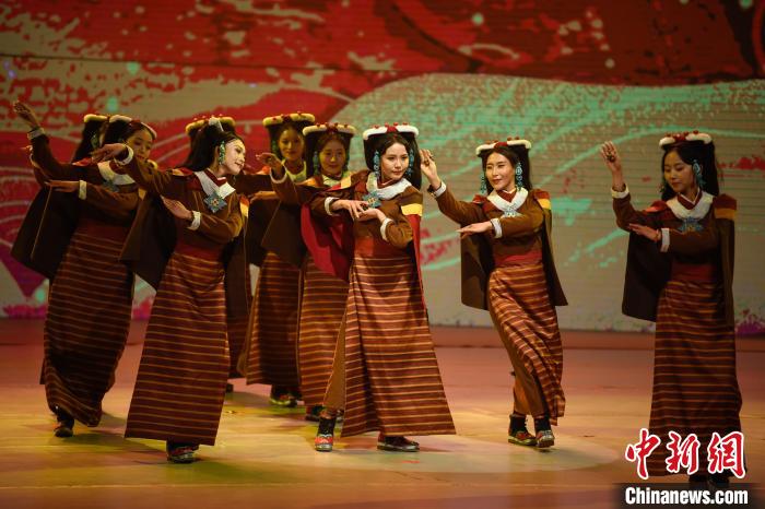 5月17日晚,2025年“雪域古城·圣地拉萨”文化旅游节“心约拉萨”专场文艺演出在西藏大剧院举行。演出在《吉祥颂》中拉开序幕,随后,次旦朗杰、次仁卓嘎等带来歌曲《心约拉萨》。京剧与藏戏碰撞的《古韵新话赞拉萨》将现场气氛推向高潮。当晚,《哎玛嚯》《吉曲河畔》等节目轮番上演,为观众带来了一场沉浸式视听盛宴 ,让大家在歌舞诗画中感受拉萨的人文底蕴与时代活力。 中新社记者 贡嘎来松 摄