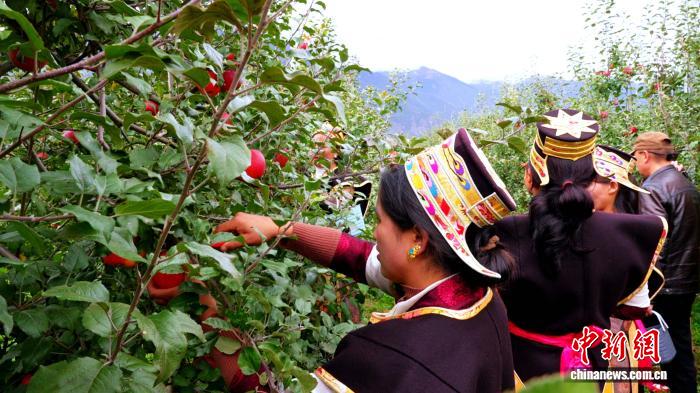 图为米林农民采摘苹果。米林融媒体中心 供图