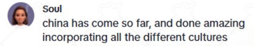 网友@Soul指出,“中国已经取得了长足的进步,在融合各种不同文化方面做出了令人惊叹的成就。”