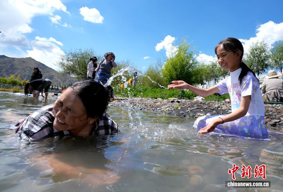 9月13日,西藏拉萨民众迎来沐浴节。每年藏历7月,西藏民众迎来为期7日的传统民俗节日沐浴节,藏语称为“嘎玛日吉”。《藏医养生》中记载,药王星当空,江河湖海等一切水源皆具药性,七日内沐浴可清净业障。图为民众在拉萨河边戏水。