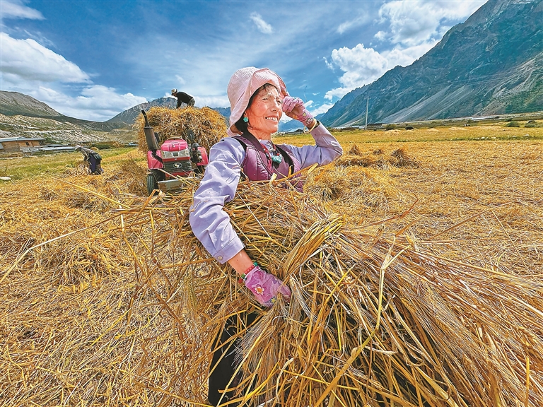 金秋的雪域高原,是一年中最动人的时节。蔚蓝的天幕下,金色的青稞麦浪从山脚一直蔓延到云端。在隆隆的机械轰鸣与悠扬的劳作歌声中,西藏各地农区迎来了丰收的季节。