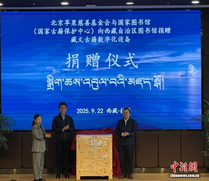 北京苹果慈善基金会与国家图书馆(国家古籍保护中心)向西藏自治区图书馆捐赠藏文古籍数字化设备捐赠仪式22日在西藏拉萨举行,此次活动是落实双方2019年签署的合作框架协议的具体举措,旨在为西藏古籍的抢救性保护与数字化传承工作提供切实的技术与设备支持。