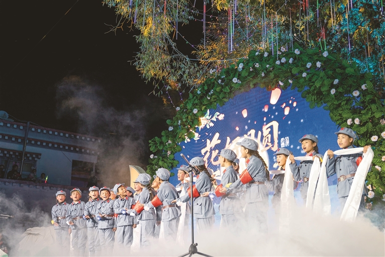 夜幕降临,在硕督镇的团结树下,“诗歌音乐会”将各族群众聚集在一起,吟诵着关于月亮、思念和团圆的诗篇,驱散了高原秋夜的寒意,也让“民族团结一家亲”的暖流沁入大家的心田。在团结树上,悬挂着一盏盏寓意吉祥团圆的灯笼,每一个都系着谜题纸条,吸引着群众驻足参与。活动最后,现场所有人围着寓意着吉祥、圆满与丰收的“特色月饼”跳起了锅庄,共同享受着这美好时刻。图由记者 桑旦欧珠 张雪芳 摄