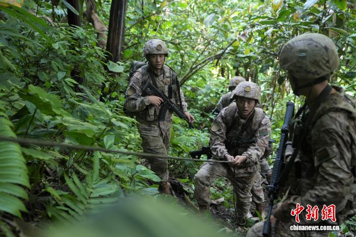 图为巡逻官兵穿越密林区。付丽豪 摄