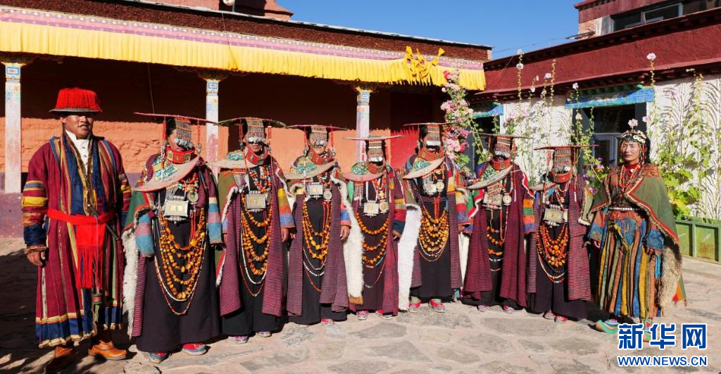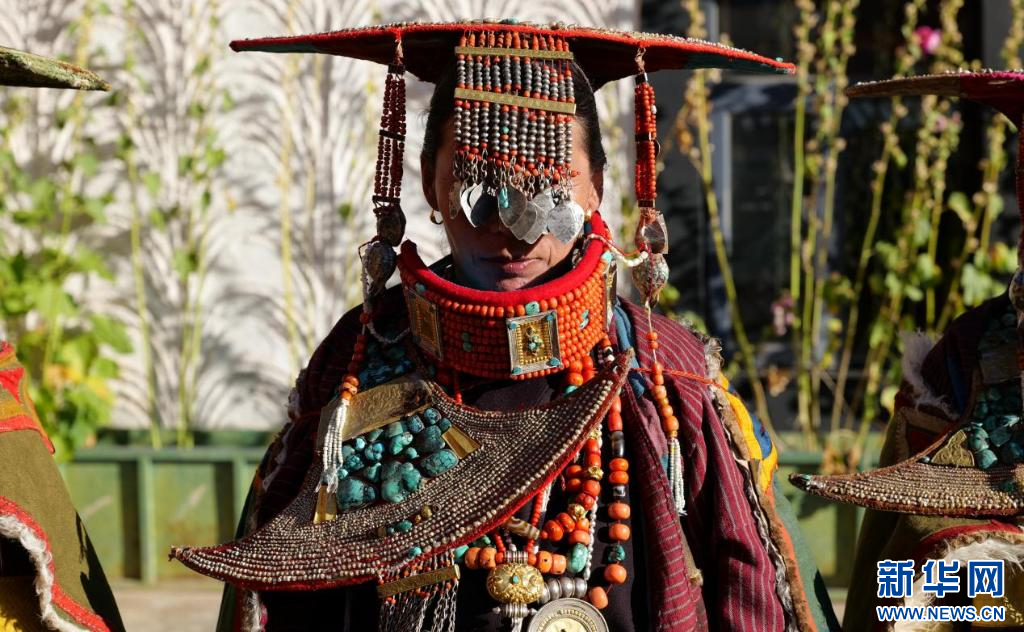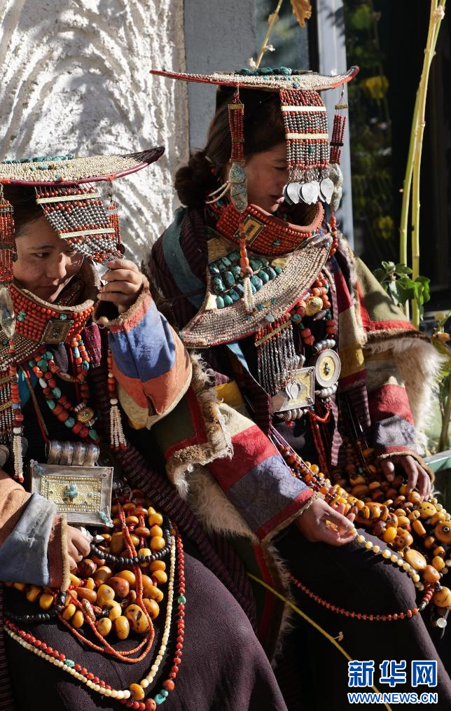 图为科迦村村民在展示普兰服饰(9月23日摄)。新华网 柑丹鸯琦 摄
