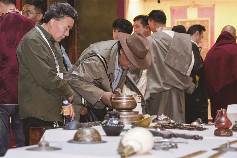 活动现场,近千名国内外古物藏家、文博专家与市民游客齐聚,共同开启这场跨越历史与现代的文化盛宴。记者了解到,本次活动以“展览、讲座、集市、拍卖”四大板块为核心,构建起多层次的文化交流平台。在展览区,大家可沉浸式感受古物的岁月沉淀;专业讲座将邀请行业专家讲解收藏知识,为藏家答疑解惑;集市板块为供需双方搭建直接对接的桥梁,满足不同群体的收藏需求;而拍卖环节则将呈现精品对决,让珍贵藏品找到心仪归宿。西藏唐卡艺术博物馆运营方、西藏博秀嘎玛实业有限公司董事长根秋扎西介绍,值得一提的是本次拍卖为慈善拍卖,拍卖所得将全部用于支持西藏文化艺术发展。