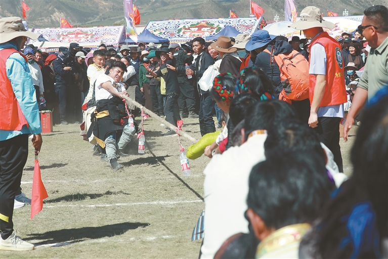 文化旅游节传统拔河比赛现场。