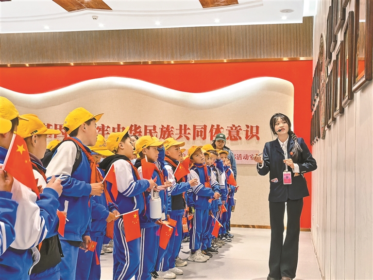 图为近日,拉萨市吉崩岗小学380名师生走进西藏毛主席像章博物馆,以“传承红色基因,铸牢中华民族共同体意识”为主题开展沉浸式学习。记者 刘斯宇 摄