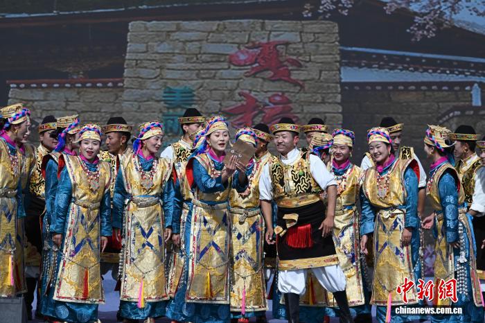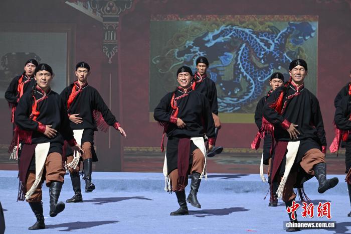 11月2日,西藏自治区“大地欢歌 格桑花演出季”全区县(区)艺术团惠民演出活动,在拉萨市堆龙德庆区民族团结主题公园精彩上演。据悉,此次演出由西藏自治区文化和旅游厅主办,西藏自治区群艺馆(区非遗保护中心)承办,各市地文旅局及拉萨市堆龙德庆区委宣传部、文旅局协办,以展示基层文化活力、丰富民众精神生活为核心,汇聚了西藏各县(区)艺术团骨干力量,这些扎根乡土的“文艺轻骑兵”,成为基层文化传播的“主力军”。图为山南市隆子县艺术团表演打墙舞《扎西康桑》。中新社记者 贡嘎来松 摄