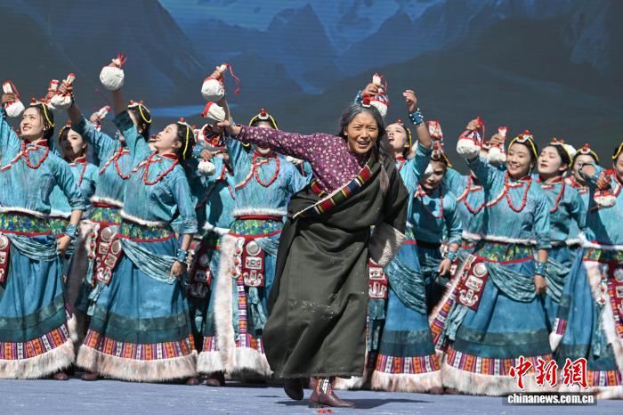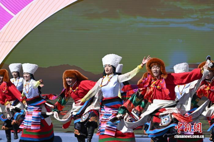 图为阿里地区改则县艺术团表演舞蹈《欢舞幸福·改则情》。中新社记者 贡嘎来松 摄