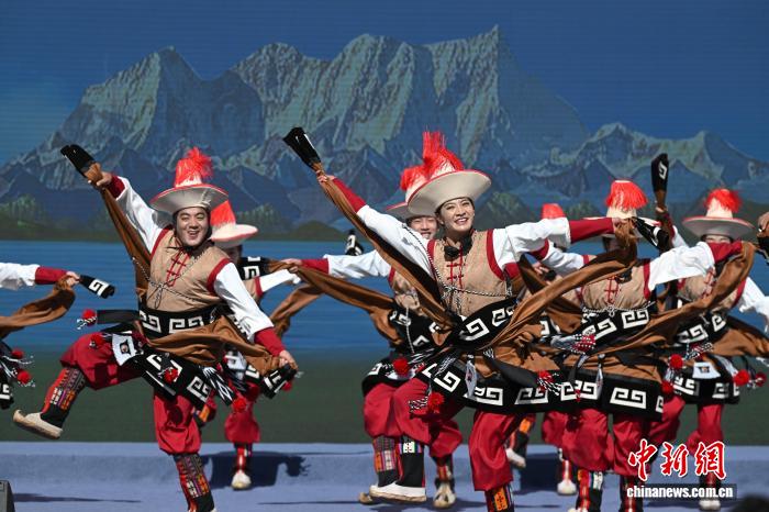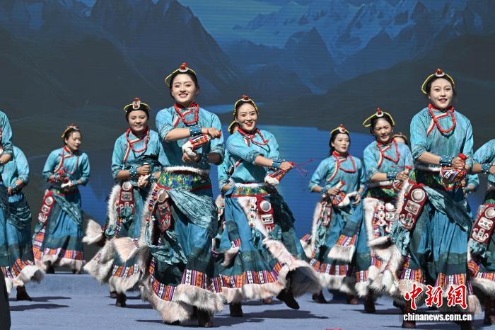 图为昌都市边坝县艺术团表演女子群舞《糌粑揉出幸福情》。中新社记者 贡嘎来松 摄