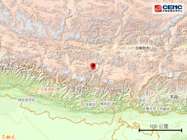 速报参数:据中国地震台网正式测定,11月4日4时57分在西藏日喀则市定日县发生4.4级地震,震源深度10公里,震中位于北纬28.43度,东经87.40度。