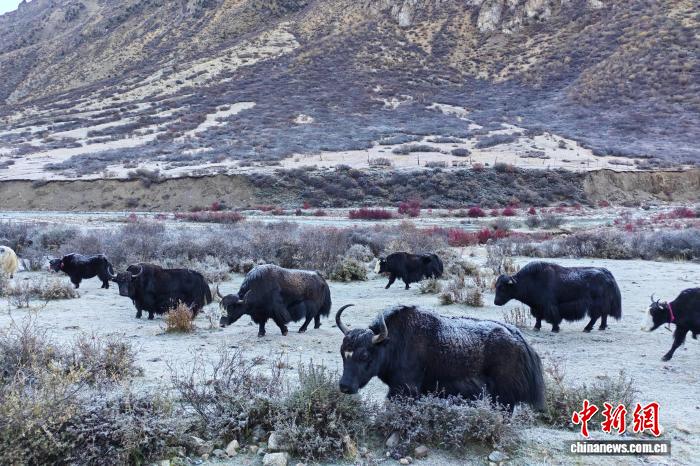 图为10月16日,西藏那曲市嘉黎县农牧民饲养的牦牛群,牦牛因与农牧民生产生活紧密相关,因此被誉为“高原之舟”“全能家畜”。江飞波 摄