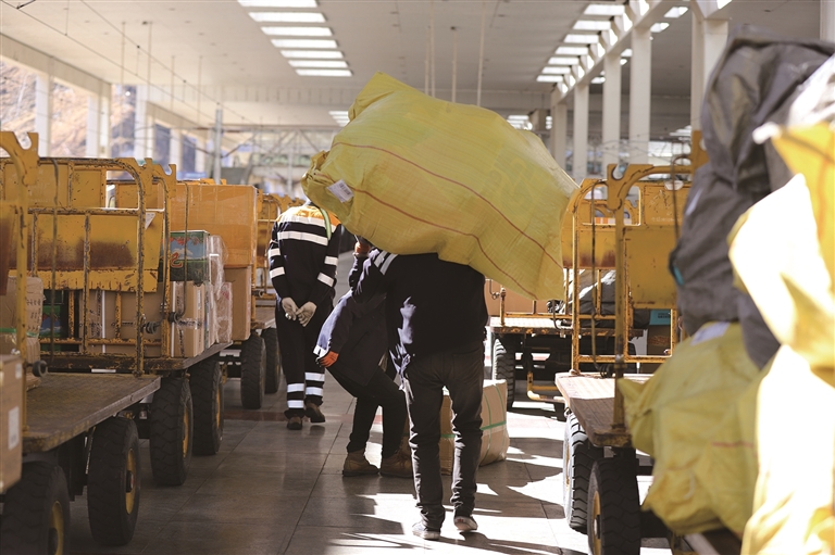 目前,2025年“双十一”铁路电商黄金周快运服务已火热启动。自11月1日起,拉萨火车站行包业务量激增,快件包裹持续涌入。面对年度物流高峰,拉萨火车站协同中铁快运拉萨分公司及各进藏列车单位,科学制定运输方案,明确岗位职责,紧盯安全管控、进出站流程与装卸组织等核心环节,全力保障每一件快件安全、高效、准时送达。
