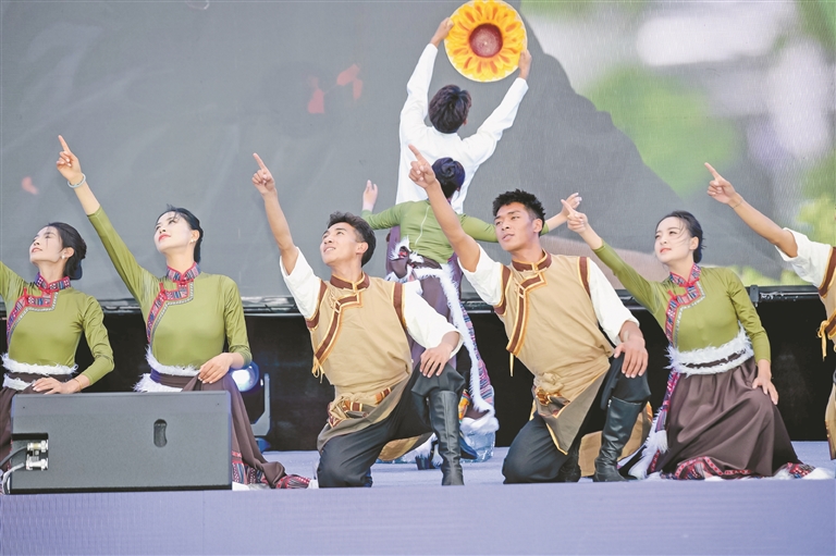 图为松赞艺术团带来的舞蹈节目《向阳花开》。
