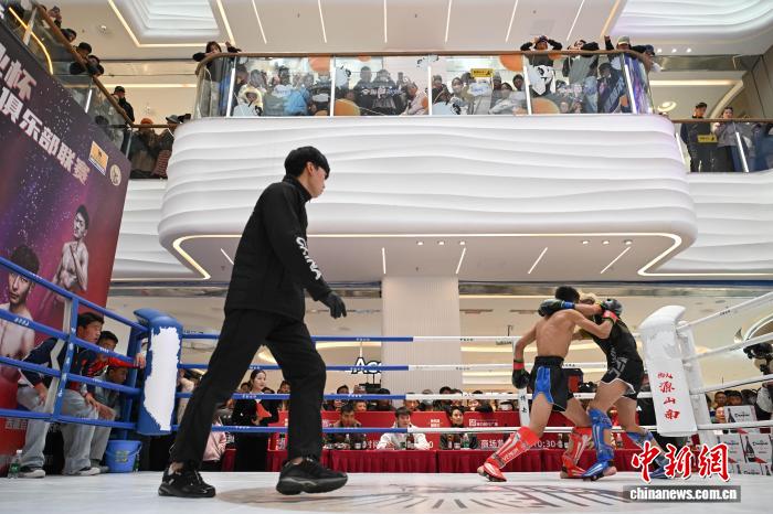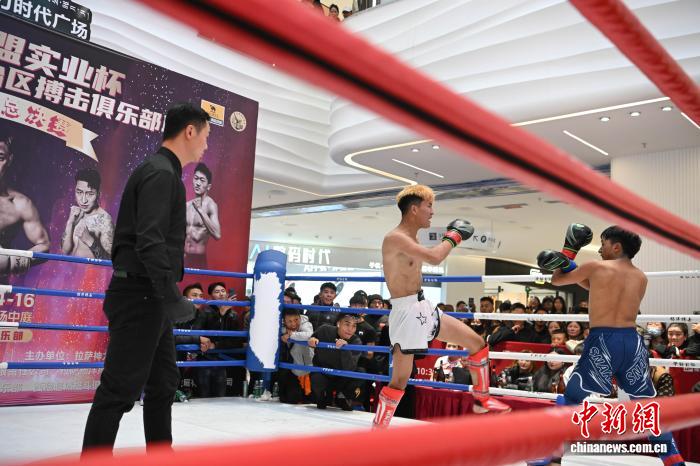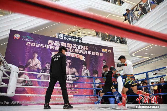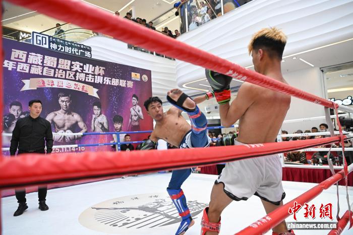11月15日,2025年西藏自治区搏击俱乐部联赛暨年度总决赛在拉萨启幕。本次赛事以“世界之巅·终极对决”为主题,汇聚了拉萨杨洋搏击俱乐部、西藏恩波格斗、格萨尔格斗、勇士格斗等多家俱乐部的70余名搏击选手,在海拔 3600 米的高原擂台上展开巅峰较量。图为2025年西藏自治区搏击俱乐部联赛暨年度总决赛比赛现场。中新社记者 贡嘎来松 摄