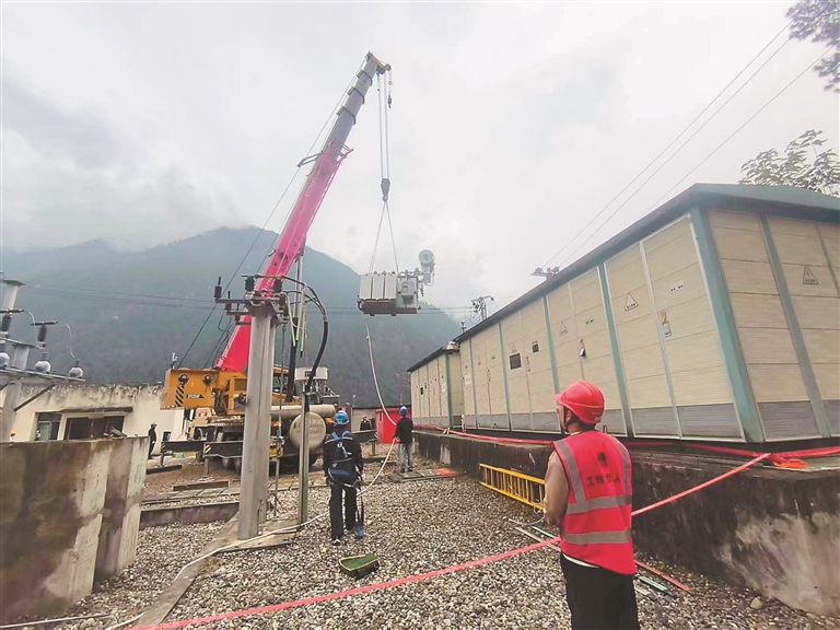 图为国网察隅县供电公司工作人员正在对变压器进行改造施工。记者 刘枫 摄