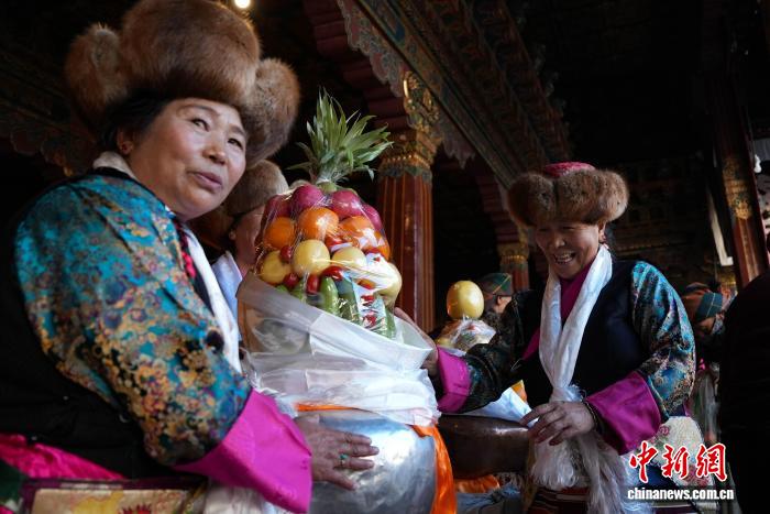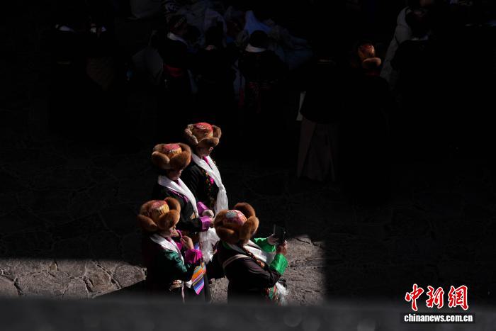 图为白拉姆节临近之际,信众在大昭寺内敬献供品后载歌载舞的场景。贡确 摄