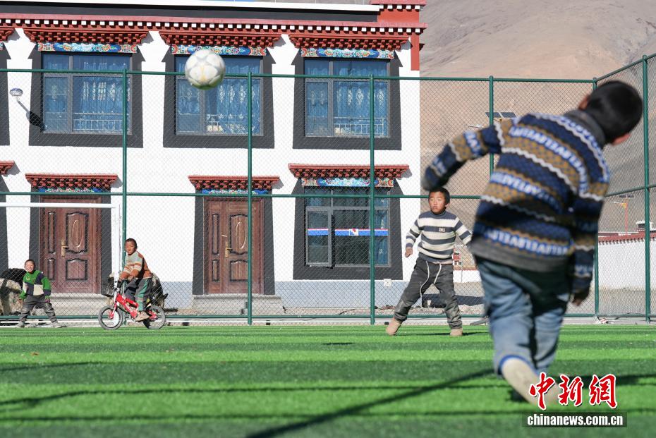 2025年1月7日,西藏定日发生6.8级地震,时隔近一年,12月24日,中新社记者探访灾后重建。日喀则森嘎村的藏式新房错落有致,柏油路连通家家户户,屋顶太阳能热水器整齐排列,炊烟袅袅间满是生机。据悉,此次日喀则地震灾后重建覆盖7县47乡镇486村,2.2万余户重建民房、1.05万余户维修加固民房已全部竣工交付,受灾民众喜迁新居。图为森嘎村的孩子们在踢足球。中新社记者 贡嘎来松 摄