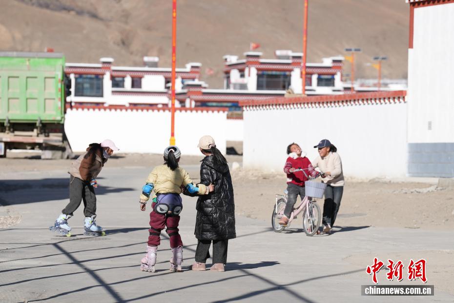 2025年1月7日,西藏定日发生6.8级地震,时隔近一年,12月24日,中新社记者探访灾后重建。日喀则森嘎村的藏式新房错落有致,柏油路连通家家户户,屋顶太阳能热水器整齐排列,炊烟袅袅间满是生机。据悉,此次日喀则地震灾后重建覆盖7县47乡镇486村,2.2万余户重建民房、1.05万余户维修加固民房已全部竣工交付,受灾民众喜迁新居。图为森嘎村的孩子们在玩耍。中新社记者 贡嘎来松 摄