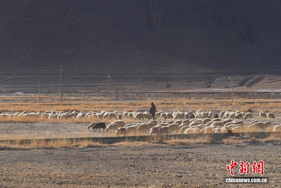 2025年1月7日,西藏定日发生6.8级地震,时隔近一年,12月24日,中新社记者探访灾后重建。日喀则森嘎村的藏式新房错落有致,柏油路连通家家户户,屋顶太阳能热水器整齐排列,炊烟袅袅间满是生机。据悉,此次日喀则地震灾后重建覆盖7县47乡镇486村,2.2万余户重建民房、1.05万余户维修加固民房已全部竣工交付,受灾民众喜迁新居。图为森嘎村村民在放羊。中新社记者 贡嘎来松 摄