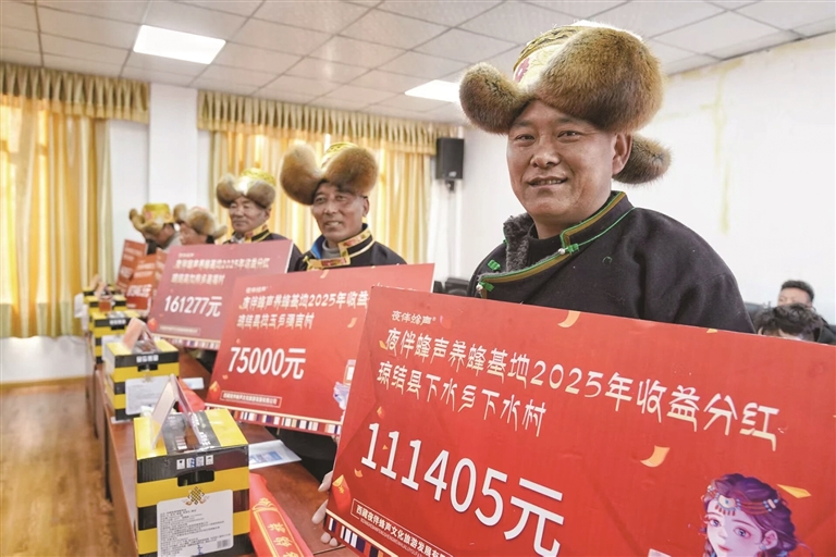 近日,山南市琼结县农业农村和科技水利局举行了养蜂产业分红仪式。现场依次公布分红金额:“加麻乡昌嘎村161277元、加麻乡白松村159651元、下水乡下水村111405元……”一个个数字背后,是琼结县养蜂产业两年多培育的丰硕成果,更是村民共享发展红利的甜蜜喜悦。